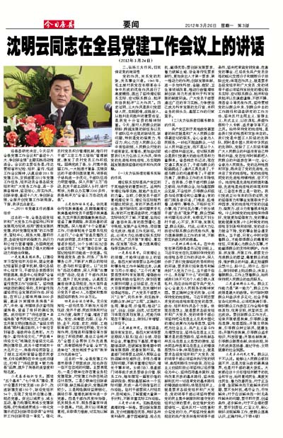 过去的一年,全县各级党组织和广大党务工作者坚持以科学发展观为统领,按照“围绕发展抓党建、抓好党建促发展”的工作要求,紧贴中心,服务大局,履职尽责,各级党组织的凝聚力、执行力和公信力显著增强,为圆满完成全年目标任务提供了强大的精神动力和政治保障。
