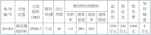 七、摘牌时间及地点:2012年4月16日16:30时(星期一)在国土资源局八楼会议室。