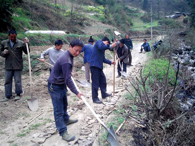 上龛乡双龙村至新营村的通村道路损毁严重,给村民出行及烟叶运输造成极大的不便,该村借助今年县三万工作队下村帮扶解困的契机,先后投入资金1万多元,发动村民义务投工,对损毁严重的1公里路段进行整修。该村村民唐文清说:“路修好了,我们10多户烟农终于告别了肩挑背驮、骡马运输的日子,今后,我们就可以甩开膀子搞发展,再也不受交通运输的限制了!”图为整修场。 (向欢 陈俊 摄)
