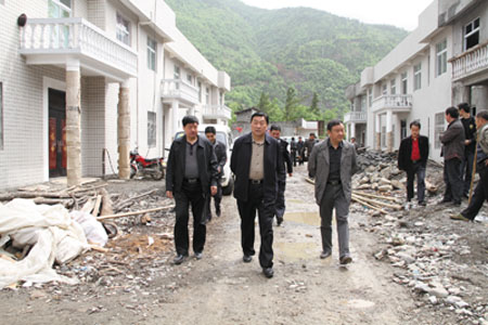 图为县委书记沈明云等领导在龙背湾水电站九道乡瑞家梁子移民安置小区调研