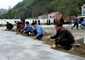日前,记者在窑淮镇淮水广场看到,施工人员正各司其职忙碌着,淮水广场的配套设施工程正在紧张施工。淮水广场位于窑淮镇镇政府所在地,广场总面积约6000平方米。广场建成后将成为全县最大的村级文化广场。 (吴宏强 摄)