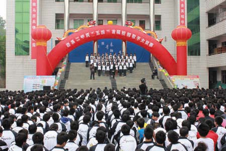 4日,县二中举办庆“五四”首届校园歌手大赛。此次活动旨在强化该校“文科优势,理科坚守,体艺突围”办学特色,彰显学生个性、发展特长,激发学生发扬“五四”精神,以高度的热情投入到学习中。(陈锐 施真 邵凯 摄)