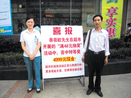 活动期间,一次性购物满48元便可参加抽奖一次,满96元可参加抽奖2次,以此类推,多买多送,活动于5月31日截止。(王丽君 摄)