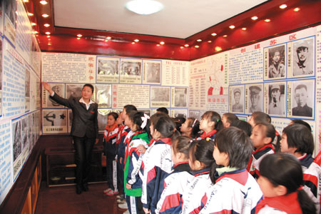 24日,青峰镇中心学校组织学生前往当地革命展览馆,通过缅怀先烈来激发青少年的爱党情怀,营造“喜迎十八大、争创新业绩”的浓厚氛围。图为青峰小学学生正在参观革命展览馆。(闻燃 刘若峰 摄)