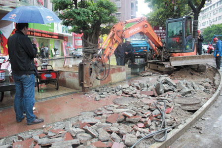 近日,笔者在神农路看到,建筑工人们正冒雨对该路段的人行道进行综合改造。据了解,今年我县启动了城区主干道综合改造二期工程,该工程拟改造神农路、南大街、丁字街、县门街等四条主干道,改造内容为更换人行道板、供水管网,增设绿化带,配套路灯、垃圾箱等市政设施,工程预计将于7月底全面竣工。