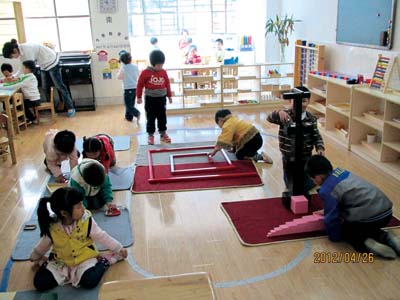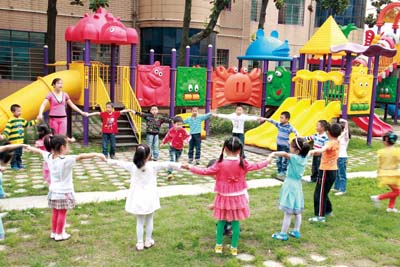 以教师“德高业精”为培养目标,合理配备教师,实行宏观调控。“集中讨论——资源共享——个人微调”的原则,既充分发挥了教师的合作精神又尊重了教师个性特点。蓬勃开展的常态课例研讨、优秀课例示范等活动提高了教师的素养。近年来,幼儿园积极营造书香校园,实施榜样带动,推广反思性教学,推进教育科研。蒙特梭利教学法的引进,礼仪教育课题的开展,有效促进了教学质量的提高。