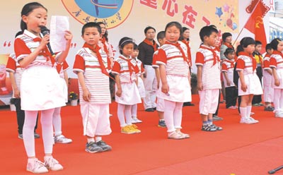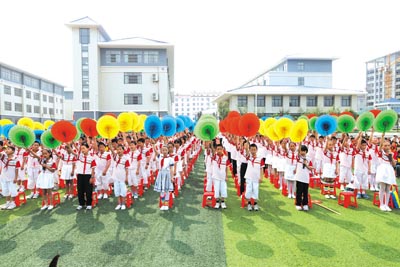 艺术节上,全校老师为同学们送上了节日的祝福和问候。县妇联、县教育局相关领导应邀参加了艺术节庆祝活动。 “七彩”艺术节上还举行了新队员入队仪式,一批勤奋好学、文明守纪的学生光荣的成为少先队员,戴上了鲜艳的红领巾。