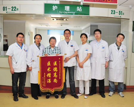 5月16日,60岁的环卫工人张某在儿子陪同下,专程到市人民医院神经内科Ⅱ病区,将一面锦旗送到医护人员手里。“医德高尚、医术精湛,我诚心诚意感谢人民医院的好医生们!”张某感动地说。