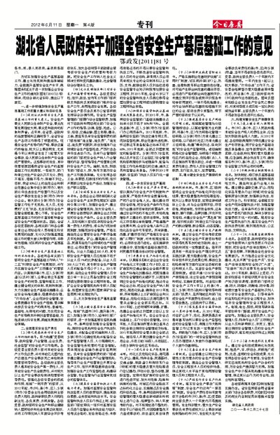 湖北省人民政府关于加强全省安全生产基层基础工作的意见 鄂政发[2011]81号