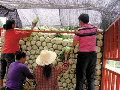 日前,笔者在野人谷镇三座庵村看到,村民正高兴地将成熟的大白菜往车上装,该村种植的大白菜个大味美、香甜细腻,倍受消费者青睐,畅销十堰、陕西、竹山等地。近年来,野人谷镇充分利用气候资源优势,组织农民种植高山无公害地膜蔬菜,发展生态农业,三座庵村成立蔬菜合作社,通过土地流转,发展高山无公害大白菜6000亩,亩产平均在10000斤左右,平均产值4500元/亩。 (付长飞 李娜 摄)
