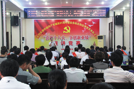 28日,县国土局举办庆祝中国共产党诞辰91周年暨业务标兵和优秀党员表彰大会。会上,来自国土系统的十八名职工还进行了“喜迎十八大、争创新业绩”演讲。近期,该局开展了“喜迎十八大、争创新业绩”主题实践活动、民主评议政风行风、双联双建、“三围绕、三查找、三纠正”作风建设、“三服务一促进”、“四级联创齐争、打造满意窗口”等活动,激发干部职工立足岗位、创先争优意识,以优异的业绩为党的生日献礼。 (何琼 赵勇 摄)
