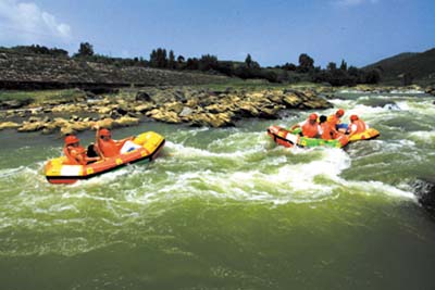 关刀坝漂流距县城中心3公里,由城关镇八里望村至红塔镇党湾村,整个漂流河道长约6公里,总落差100米,河面最狭窄处10米,最宽处100米,河道蜿蜒曲折,水流湍急,沿线有落差各异的激流险滩;神形绝妙的奇峰异石;绿树掩映的村庄农舍;朴实勤劳的居民群众,置身此景,让你不由地想起“人在景中走,犹如画中游”的诗句! (赵爱平 摄)
