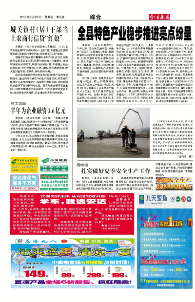 2012年上半年,实现农业生产总值16亿元,较上年同期增长23%,农产品加工产值达14亿元,其中500万元规模以上企业加工产值达10.5亿元。加工产值占农业总产值的87.5%。全县5家出口创汇企业预计出口创汇1500万美元,其中食用菌出口创汇1000万美元,纺织品出口创汇500万美元。一是茶叶产业。2012年春季茶叶采摘面积达到5万亩,生产春茶195吨,其中名优茶产量155吨,产值达1.2亿元,产量和产值与去年同期相比分别增长105%、50%。新播茶叶面积1万亩,全县茶叶基地总面积达9万亩。二是药材产业。完成以桔梗、金银花、丹参、柴胡、冬花、木瓜、草决明、板兰根、绞股蓝等品种为主的播种面积达6万亩,订单面积4.6万亩,建设县乡两级示范园25个,辐射175个村,培植种植大户489个,已全面完成春夏播任务。三是山羊产业。截止目前,全县山羊饲养量达61.17万只,其中存栏34.21万只,出栏26.96万只,分别比去年同期的52.84万只、30.17万只、22.67万只增长15.76%、13.4和18.9%;能繁母羊存栏18.2万只,比去年同期16.9万只增长7.7%;新发展200只以上规模养羊大户102户,新建羊栏836间,13400平方米;新发展“1235”示范户162户,羊栏648间10370平方米;新培植“1235”示范村12个,巩固老养羊示范区22个;引进种羊6440只,其中种公羊370只;种植牧草1460亩。四是核桃产业。截至目前,栽植核桃2.45万亩,涉及全县17个乡镇(场)79个行政村。新建核桃产业基地布局以住房城镇带沿线乡镇为主,辐射全县大部分乡镇。其中:竹房城镇带沿线的城关栽植核桃2248亩、红塔2510亩、军店3800亩、化龙2700亩、窑淮1400亩;其余乡镇栽植核桃11842亩。