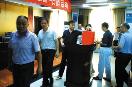为弘扬“扶贫济困、安老救孤、赈灾助医、行善助学”的慈善宗旨,19日,县检察院、县法院举行“慈善一日捐”活动。活动中,两院干警积极响应,慷慨解囊,分别捐款6000余元。图为县检察院干警正在捐款。