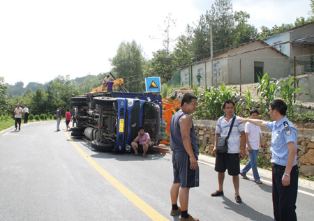 工作人员赶到现场,发现一辆货车侧翻在公路旁边,车内货物将移动通信杆路打断,光缆零乱地挂在车旁。见到此情况,工作人员一边保护现场,查看有无人员受伤,一边将已被破坏的光缆重新布放接续。