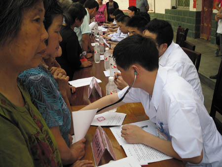 据了解,市太和医院与青峰镇中心卫生院建立技术协作单位以来,多次深入该院为当地群众进行义诊;同时积极组织该院职工前往太和医院进行免费进修。图为义诊现场。
