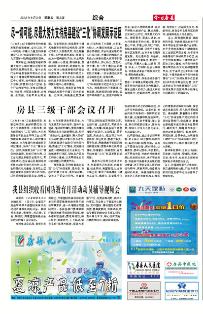 本报讯 (记者何琼见习记者魏远扬) 1至2日,全省召开党政军领导干部国防教育月活动动员辅导电视电话会。县领导朱光洪、张慧彬、刘庆涛、王岩、陈德汉、周建国在房县分会场收听收看了会议实况。