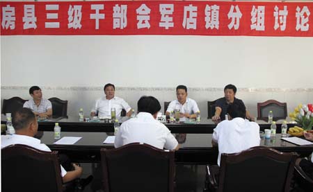 沈明云在听取军店干部镇发言后要求,军店镇要进一步认真学习、深刻领会、全面贯彻、狠抓落实周霁书记的讲话精神,要坚持城乡统筹,发挥区位优势和良好的发展态势,抢抓竹房城镇带的建设机遇;进一步解放思想,加强土地流转工作,高质量高标准的建好药材基地、苗圃基地,核桃基地,走大农业的发展之路,力求成为全县现代农业大镇;加快集镇建设步伐,力求发展成为西部中心城镇;狠抓项目争取工作,大力发展交通,力求发展成为商贸流通大镇;狠抓招商引资工作,激活民力,集中财力,力求发展成为工业崛起新镇、社会综合发展的重镇,把军店镇打造成房县第一大镇。