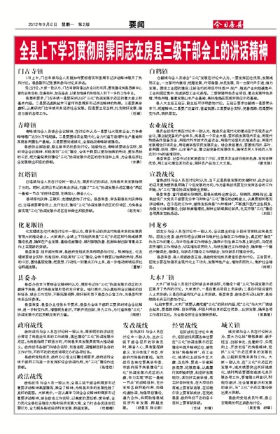 张慧彬要求,门古寺镇一是要深刻认识“三化”协调发展示范区的重大意义和基本内涵。二是要迅速掀起学习宣传市委周霁书记讲话精神的热潮。三是要高举旗帜,认真研究门古寺镇未来经济社会发展。四是要立足当前,扎实做好发展、稳定方面的各项工作。 (任娟)