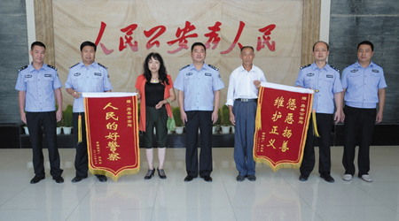 本报讯 (通讯员汪莹) 近日,红塔镇塘溪沟村鸿运砖场负责人杜某、田某来到县公安局,为民警们送上两面绣有“维护正义 惩恶扬善”和“人民好警察”的锦旗,感谢民警们维护了他们的合法权益。
