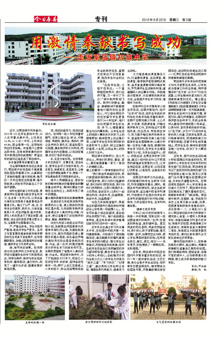 激情四溢的镇中人,在教育改革的大潮中,挺立潮头,用激情和奉献打造着自己精彩的校园。我们有理由相信,团结奋进、自强不息的镇中人,必将取得更大的辉煌,使之成为我县西部的窗口学校。
