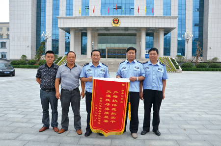 20日上午,县恒通客运公司、十房客运联合体车队的负责人来到县公安局办公室,将一面绣着“严格执法真抓实干 交通秩序成效显著”的锦旗送到公安民警手中,感谢县公安局交警大队整治城区交通秩序所做出的努力。