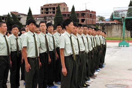 22日,县二中举行了2012年军训开训典礼,拉开了新生军训的帷幕。该校坚持“多出人才,出好人才”的思想,把学生养成教育和入学军事训练紧密结合起来,持之以恒地对新生进行军训,培养学生良好行为习惯和爱国意识。 (陈振权 唐华 摄)