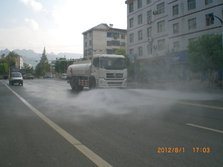 为服务诗经文化节,营造良好氛围,连日来,县环卫所紧紧围绕道路保洁、垃圾清运、日常管理等几项重点工作,充分利用人机配合的模式,加强清扫力度,实现主、次干道全天候清扫保洁,生活垃圾袋装压缩密闭直运,确保环卫工作协调运转,使城区面貌焕然一新。图为洒水车正在武当路冲洗路面。