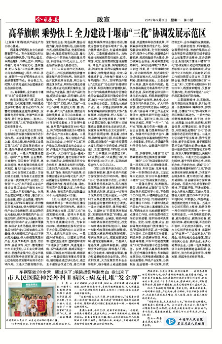 (一)建设“三化”协调发展示范区,是落实中央、省委、市委决策部署的重要举措。今年全国“两会”期间,李克强副总理在湖北代表团参加审议时,特别强调湖北要做好“三化”协调发展的示范。7月中旬,李克强副总理在湖北视察时,再次对推进“三化”协调发展提出明确要求。省委书记李鸿忠在省第十次党代会报告中提出:协调推进工业化、城镇化和农业现代化,是湖北科学发展、跨越式发展的必由之路。市委书记周霁在房县三级干部会议上明确提出,建设“三化”协调发展示范区是市级战略,要求全市上下鼎力支持、统筹推进。房县经过充分调研论证、结合县情实际提出的建设“三化”协调发展示范区,是创造性贯彻落实中央、省委、市委决策部署的具体体现。