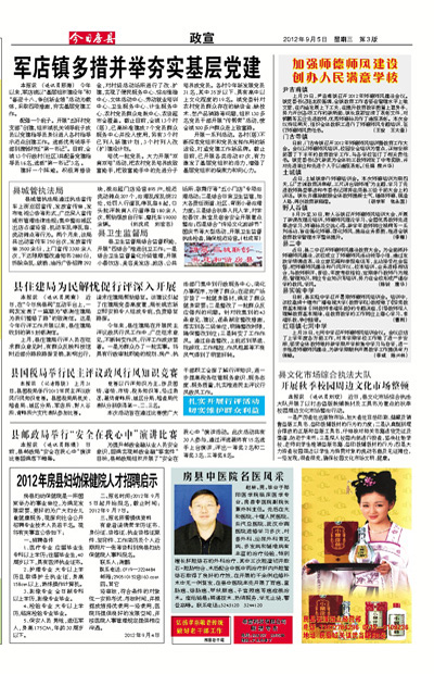 县卫生监督局结合监督职能,开展“四结合”推进创卫工作:一是结合卫生监督量化分级管理,开展小餐饮店、美容美发店、旅店、公共场所、歌舞厅等“五小门店”专项治理活动;二是结合日常卫生监管,加大各责任街道、社区、背街小巷治理力度;三是结合秋季入托入学,对学校餐饮、教室及宿舍安全开展重点整治;四是结合“诗经文化旅游节”国庆节等大型活动,开展卫生监督执法检查,确保规范经营。(杜成军)