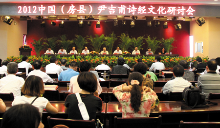 本报讯 (记者吴宏强 田兰兰见习记者刘臣 杨鹏通讯员陈业波) 9日下午,2012中国(房县)尹吉甫诗经文化研讨会在霖泓会议中心举行,中国诗经学会名誉会长夏传才,中国诗经学会会长王长华,及来自全国各地的专家学者就尹吉甫诗经文化研究课题进行了深入探讨。