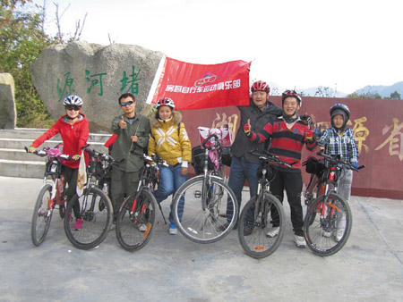 据了解,参加此次骑行活动年龄最小的成员仅10岁,该活动历时4天,行程320多公里。图为骑行队伍在大九湖堵河源留影。 (邓清国 摄)