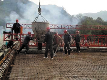 23日上午8时,十房高速六标主体工程赵家坪2#大桥桥面铺装工作全面展开。赵家坪2#大桥全长246.08米,该工作的全面开展,有力促进了各施工节点互动,将为完成四季度生产目标奠定基础。(蔡国梁 摄)