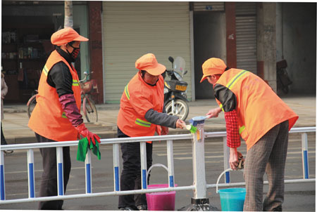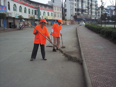 环卫工作是城市的一道窗口。我县有环卫工人290多名,平均年龄55岁,年纪最大的已有70多岁,他们负责全县100多万平方米的垃圾清扫保洁工作,为此,他们需要每天从凌晨4:30到晚上10:30连续18个小时不间断工作,这其中的艰辛不得而知。