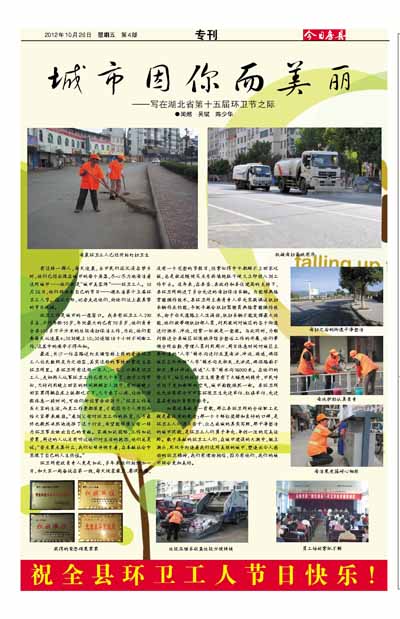 有这样一群人,每天凌晨,当市民们还沉浸在梦乡时,他们已经出现在城市的每个角落,尽心尽力地清洁着这所城市……他们就是“城市美容师”——环卫工人。10月26日,他们将迎来自己的节日——湖北省第十五届环卫工人节。值此之际,记者走近他们,向他们送上最真挚的节日祝福。