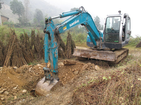 日前,笔者在姚坪乡高家坡核桃基地上看到,一台挖掘机仅用3个小时就挖好树窝500多个,相当于40人一天的工作量。乡党委书记王德洲告诉笔者:今秋冬明春全乡共计需栽植核桃4万多株。为统一作业标准,该乡筹资引进2台挖掘机用于挖窝作业大大提高了建设速度。目前,全乡累计挖窝3万多个。(柯勇 罗成林摄)