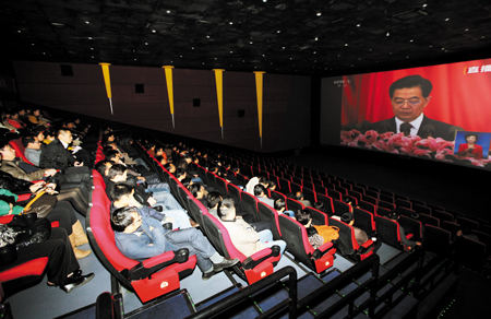 9时整,朱光洪、陆毅、王家波、徐锦凤、陈渊、王岩、姚天国及在家的县四大家领导准时在亚新国际影城收看十八大开幕式盛况。收看结束后,县长朱光洪结合会议精神,对全县各项工作进行部署。