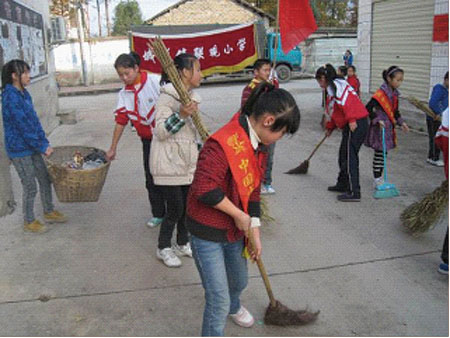 5日,城关镇联观小学150多名学生志愿者积极响应“三城联创”的号召,在老师们的带领下,携带着扫帚、铁锹、箩筐等工具,来到凤凰山路进行街道大扫除公益劳动。参与清洁的师生们纷纷表示,美化环境是每个房县人应尽的义务,他们将为“三城联创”贡献自己的力量。(杜学运 摄)