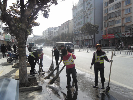 全县开展城区环境秩序综合整治以来,县环境卫生管理所定期组织人员,对房陵大道中段十字街至西河桥道路两侧的‘人字’排水沟进行清淤、冲洗、疏通。截至目前,已累计冲洗、疏通‘人字’排水沟9000米。