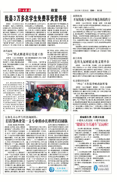 为把学生营养改善计划这项爱心工程、民心工程抓实,确保营养餐质量和安全,确保营养餐“全部吃进学生肚子里”,县教育局采取“六大举措”稳步推进营养改善计划工作:全县统一招标,确定食品供货商;建立组织机构,明确工作责任;健全工作制度,强化供餐管理;加强政策宣传,强化健康教育;加强“营养计划”网络建设;加强资金管理,确保资金安全。我县建立健全了营养改善计划的日常管理、安全管理、责任追究、验收入库、储存保管、发放与用餐、档案管理、试尝和留样等“八项制度”,并通过政府公开招标采购方式确定牛奶、糕点等营养食品的供货商,实行定点、集中采购,供餐模式因地制宜,保证学生摄入足量的营养。