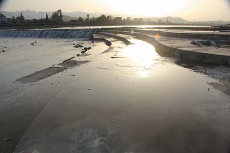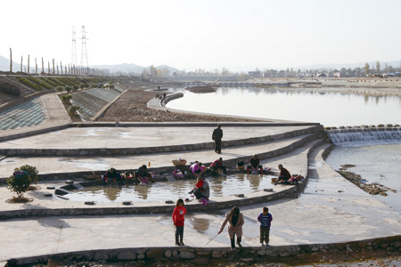 近日,笔者在县重点项目之一的马栏河河道治理工程莲花段看见,人工瀑布直流而下,梯级嬉水台在夕阳的照耀下显得格外美丽,一群农家妇女正在人工洗衣池里搓洗衣服。