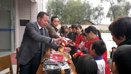 26日,县特殊教育学校举行“冬季送温暖,爱心溢校园”活动,购买价值5000多元的棉衣、手套、棉袜和字典等物品发放给困难学生(如图)。为让智障儿童和正常孩子一样平等享受教育资源,快乐健康成长,该校开展爱心活动,组织每位教职员工和困难学生,特别是困难留守残疾儿童结成爱心对子,点对点为他们提供学习生活方面的援助。 (尤先荣 邹正永 摄)