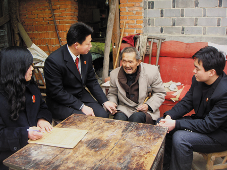 2008年5月,窑淮镇观音堂村村民陆玉梅搭邻居杨某的“顺风车”发生交通事故。为了5万元赔偿款的执行,景大喜多次上门做工作,引导他们互为对方着想。动情处,陆玉梅拔出被假肢磨得尚在流血的断腿嚎啕大哭,杨某也抚摸着伤残的胳臂抽泣。见此情景,景大喜忍不住抹眼泪。法官落泪,一时让当事人和现场的群众没了主张。良久,杨某抹去眼泪,说:“景庭长,你说得不错,我听你的,这就去取钱。”陆玉梅却说:“那钱是你自家土地、山林换的养命钱,全给了我,你今后生活咋办。我只要3万元,剩余的2万元不要了。”案件了结,景大喜却不轻松。陆玉梅今后的生活成了压在他心口的石头。此后几月,他和同事多次写报告为陆玉梅申请司法救助金。几经周折,终于批了下来。
