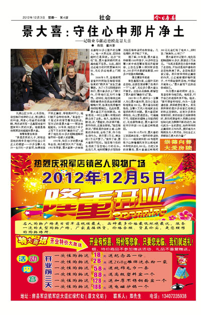 作为景大喜的同学、老乡,笔者经常与他交流。他坦言,对于自己的选择终身不悔。他说:“面对荣誉和信任,作为一名普通法官,我深感责任重大。其实我所做的是许多法官已经做过的和正在做的。还有许多我没有做到的,有的法官已经做得很好,我将把荣誉和人民群众的信任转化成为源源不断的动力,转化成为一生的责任,始终保持清正廉洁的工作作风,更好地为大局服务为人民司法,为社会正义贡献自己更大的力量!”