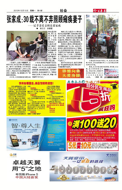 一场意外,让妻子病魔缠身,从神志不清,到行动不便,再到瘫痪在床。面对人生的困境,丈夫顶住压力,痴情守护瘫痪妻子,并把儿女抚养成人,用自己的行动诠释着相濡以沫的人间真情。他,就是原大木厂镇副镇长张家成。
