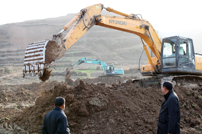 自10月下旬以来,我县开始对红塔、军店、化龙堰、野人谷镇四个乡镇进行低丘岗地改造和基本农田土地整理项目。据悉,该项目总规模达4.3万亩,总投资8553.71万元,可净增耕地10765.8亩。项目实施后,能有效地改善农民生产种植条件,缓解县域经济发展用地指标需求矛盾。图为10日化龙堰镇李堰村正在进行土地整治。
