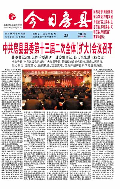 中共房县县委第十三届二次全体(扩大)会议召开 县委书记沈明云作重要讲话 县委副书记、县长朱光洪主持会议