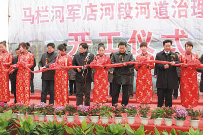 2月2日上午, 襄关(襄阳至竹溪县关垭)线房县至军店段一级路改扩建工程及城区马栏河军店河段河道治理工程先后举行开工仪式。两项目总投资近3.8亿元。图为城区马栏河军店河段河道治理工程开工剪彩现场。