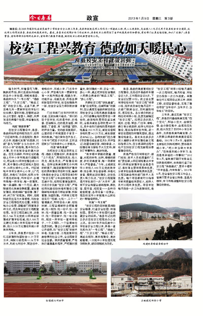 编者按:自2009年国务院启动实施中小学校舍安全工程三年来,我县积极把这项工作作为一项德政工程、民心工程来抓,先后投入1亿多元用于我县校舍安全建设,此此项工作得到县委、县政府的高度评价。最近,县委书记沈明云专门作出批示:房县校安工程得到了省市的高度评价和赞扬,有关部门认真总结经验,加以广泛推广;县委常委、宣传部部长徐锦凤也批示:宣传部门要集中报道,做好校安工程的典型宣传工作。