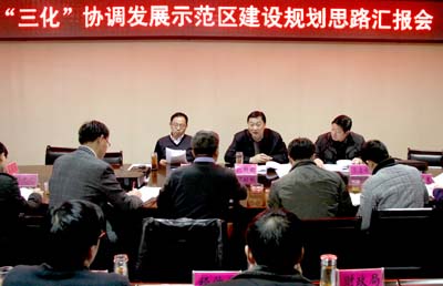 沈明云指出,“三化”协调发展示范区规划的制定要结合国家的宏观发展战略,借鉴国际、国内“三化”协调发展的先进经验做法,立足县情展开深入调查研究,规划站位要高、观念要新、思路要开阔、目标制定要高,规划要具有引领性、指导性和操作性。沈明云强调,房县“三化”协调发展示范区建设要定位于秦巴山片区,立足于建设秦巴山片区生态工业新区、秦巴山片区中心城区、秦巴山片区绿色农产品生产加工核心基地和鄂西生态文化旅游圈重要节点,从而实现政府强、百姓富、环境好的"三化"协调发展目标。